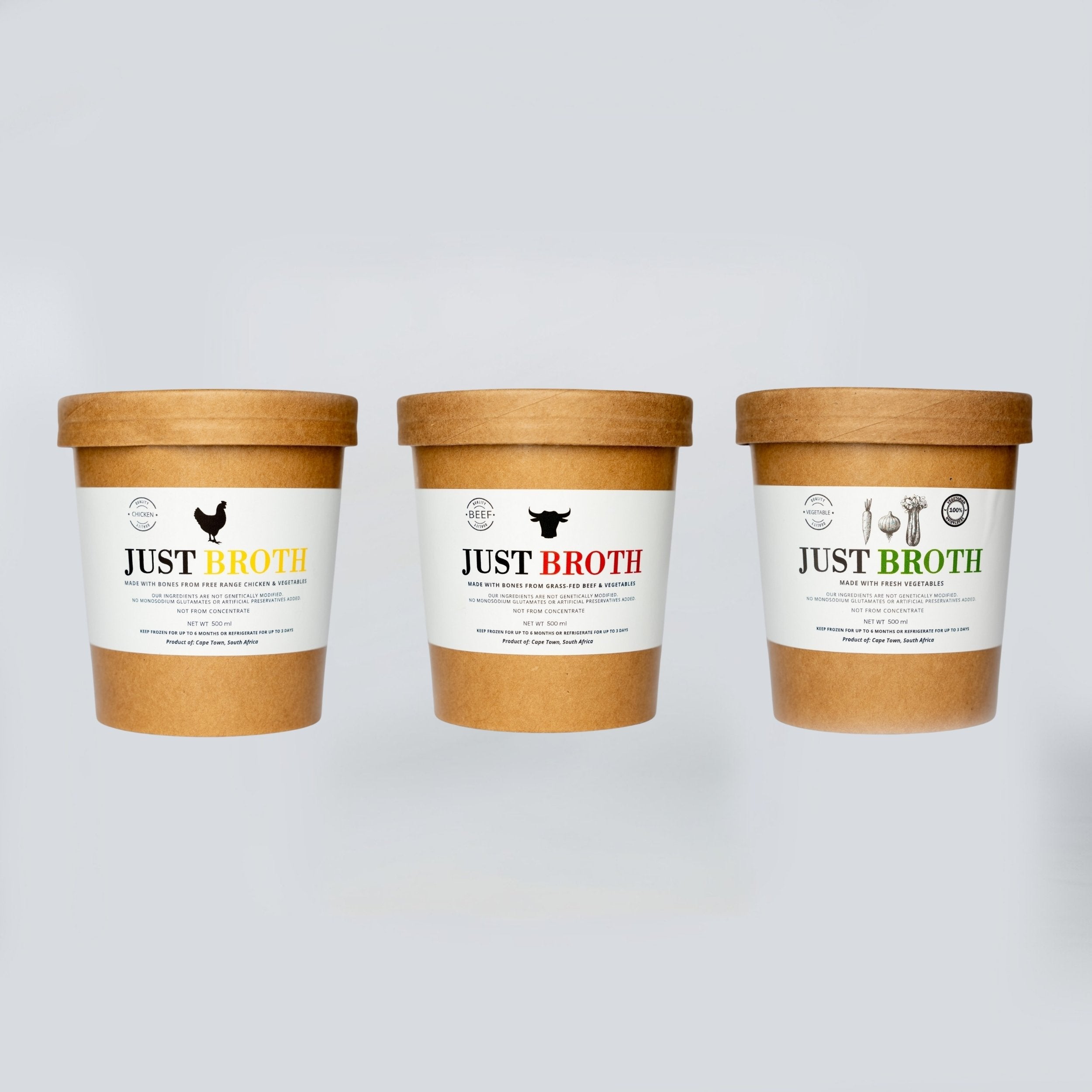 Mixed Broth Trio – Chicken, Beef & Veggie (500ml / 1L)
